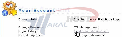 پس از ورود یا لوگین به پنل دایرکت ادمین از قسمت Your Account بر روی گزینه Subdomain Management کلیک میکنیم.