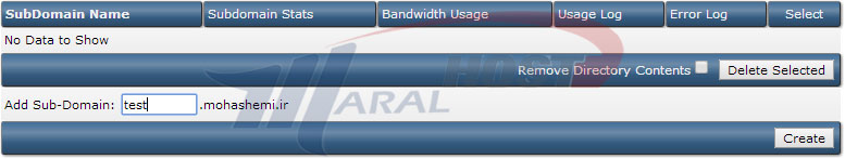سپس در صفحه باز شده و در قسمت Add Sub- Domain نام زیر دامنه مورد نظر را وارد کرده و بر روی گزینه Create کلیک میکنیم.